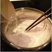 2.倒入水,用筷子搅拌混合