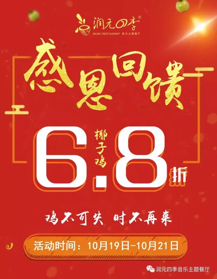 椰子鸡6.8折宴请所有喜爱润元四季的小伙伴们!仅限3天!