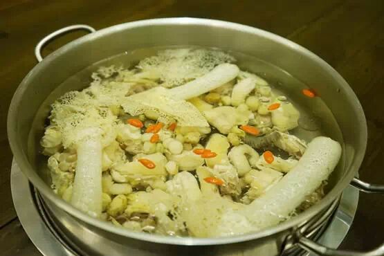 海南的文昌鸡皮薄滑爽,肉质鲜美,吃起来有些韧劲,伴着椰汁,鲜甜无比,在特制酱料中放入辣椒、海南沙姜再滴几滴海南产的野生青柠汁儿就是简单却美味的蘸料。当然还可以加入各种火锅的配菜,都会有不同凡响的口感。
