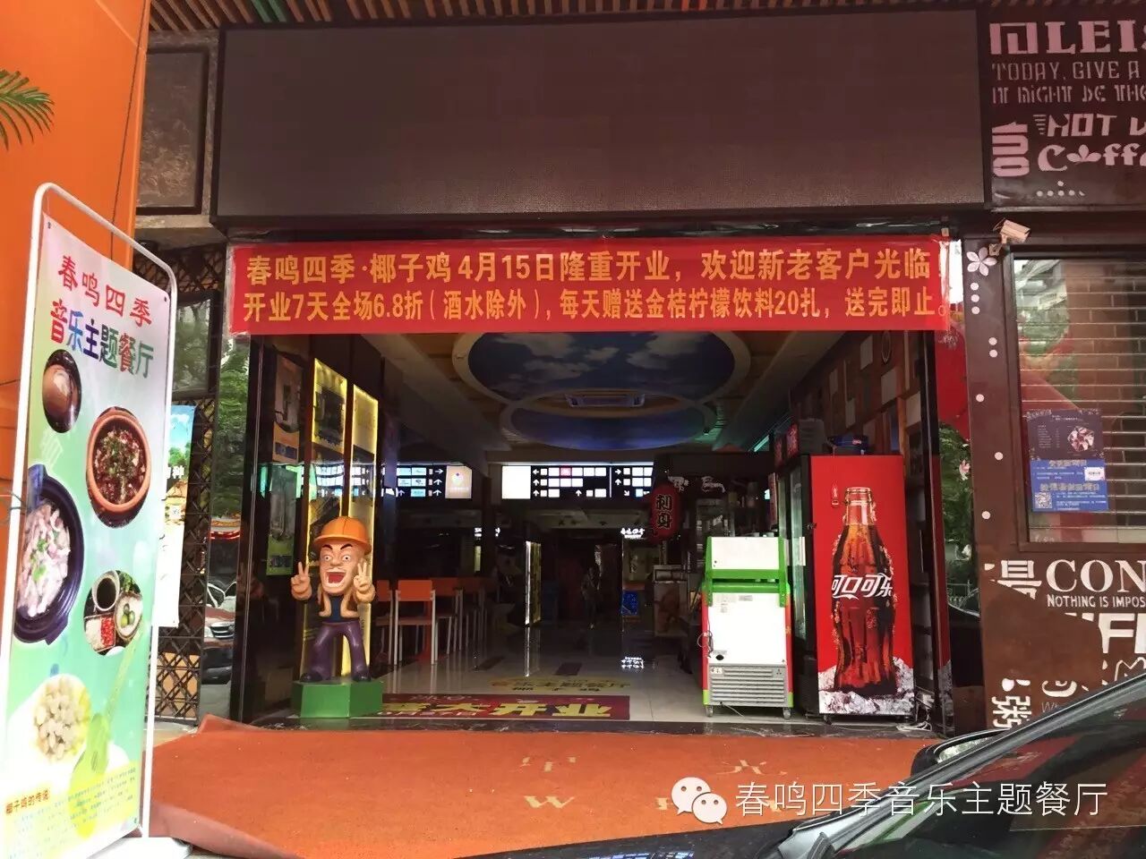 嗨春鸣四季的粉粉们大家好:小编给大家带来福利啦!五一开始咱们老板要隆重推出宵夜活动了。有美味销魂的烧烤+啤酒+音乐+激情还有椰子鸡!还有特别特别的优惠哦,营业时间为早上11点至凌晨2点哦。敬请期待!!! 下面先上上个别精美的环境图片给大家分享。看到底哦有惊喜!