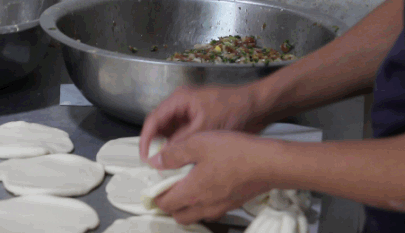包子小哥边做边笑