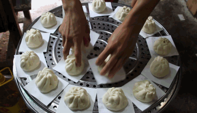 转眼间,蒸笼上一下就摆好了包子和花卷的雏形