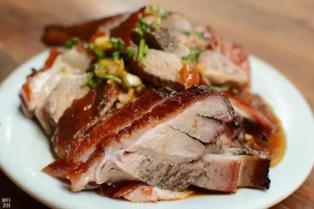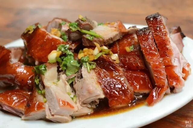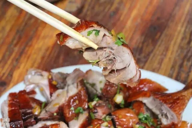 咬下烤鸭的皮,油“滋”的一下全蹦出来