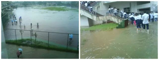 一到台风季或雨天简直就是威尼斯水城,一路踏水到教室