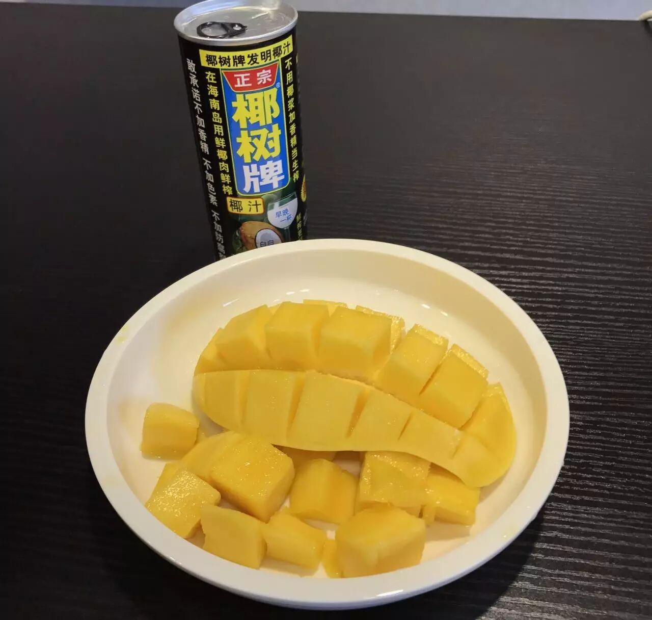 切芒果:电锅在跳舞时,將芒果切丁备用。