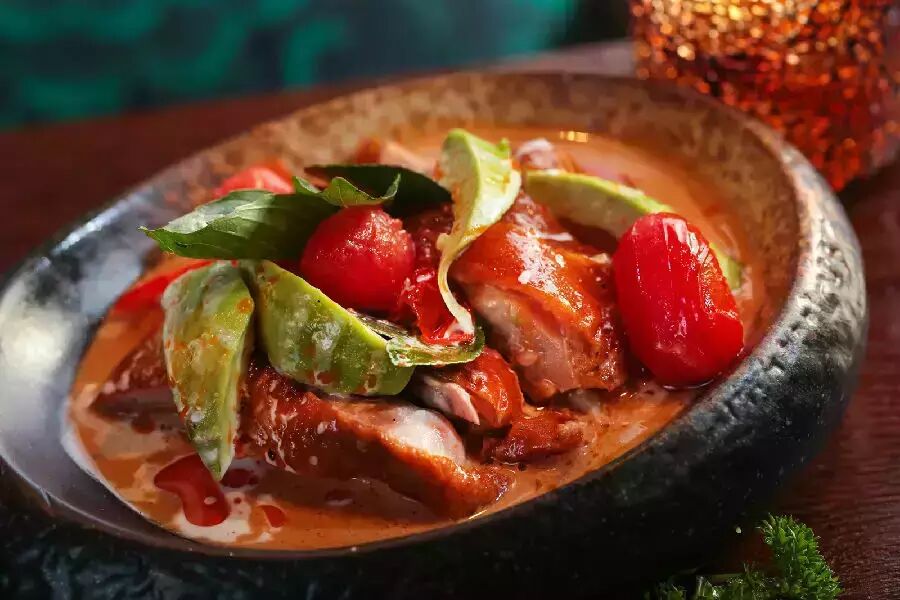 猛然看到菜单上有道红咖喱做的牛油果烤鸭,好奇心如我,立刻点来试。 牛油果是非常百搭的食材,搭配其他食材不破坏食物原有味道,还能增加味觉上的层次感和厚重感。这道菜将牛油果事先打成汁,以取代传统的椰奶进行调配;鸭子也在烤的皮焦肉嫩时立刻下到咖喱锅里入味。鸭肉本身的腥膻味在炙烤之后立即消散,嚼起来也特别香。咖喱的汤汁甜甜辣辣,口感绵密,这时候再上一碗白饭来拌,简直完美!(饭桶啊!)
