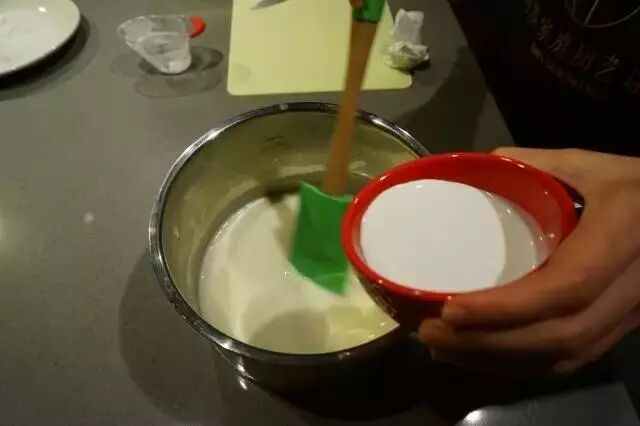 8. 千层的做法:取一个自己喜欢的形状的容器,先倒进一层椰汁,然后放进冰箱冷冻几分钟至表面凝固;