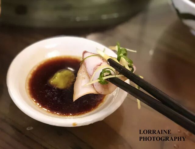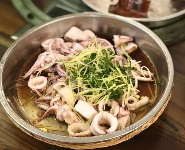 洛伦和顺德本地的新朋友拼桌,他们说顺德本地人其实口味比较清淡,更喜欢吃到食物本身的清鲜。这一道鲜鱿就是本地人的心头好。