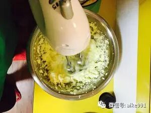 用打蛋器低速将加了糖的黄油打至稍稍膨大发白,一分钟左右即可