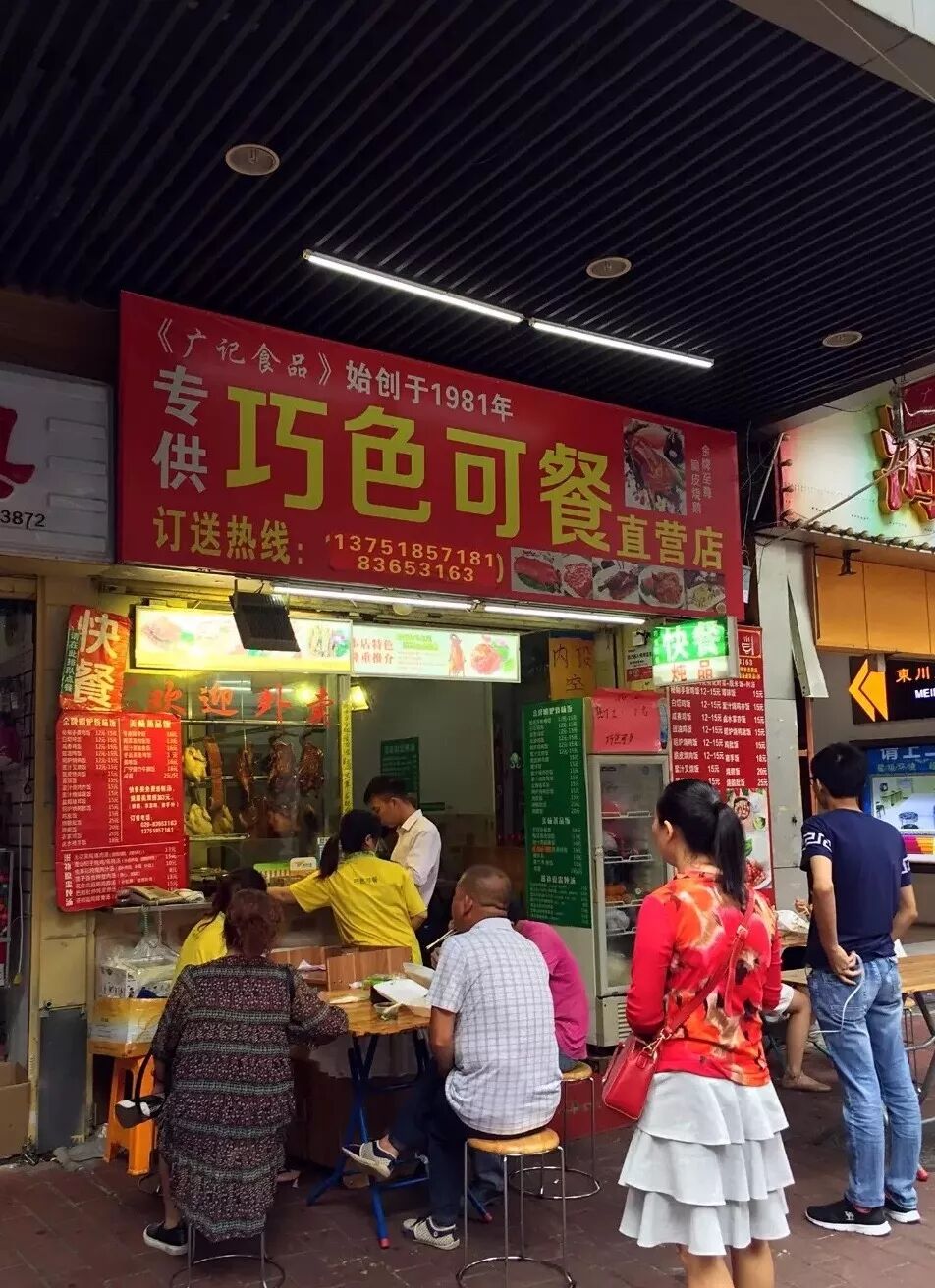 “达强”往下走,到红绿灯处过对面,再往里走一点,就是“巧色可餐”。这里的烧鹅可是有着35年历史的“广记食品”给它家特供的!