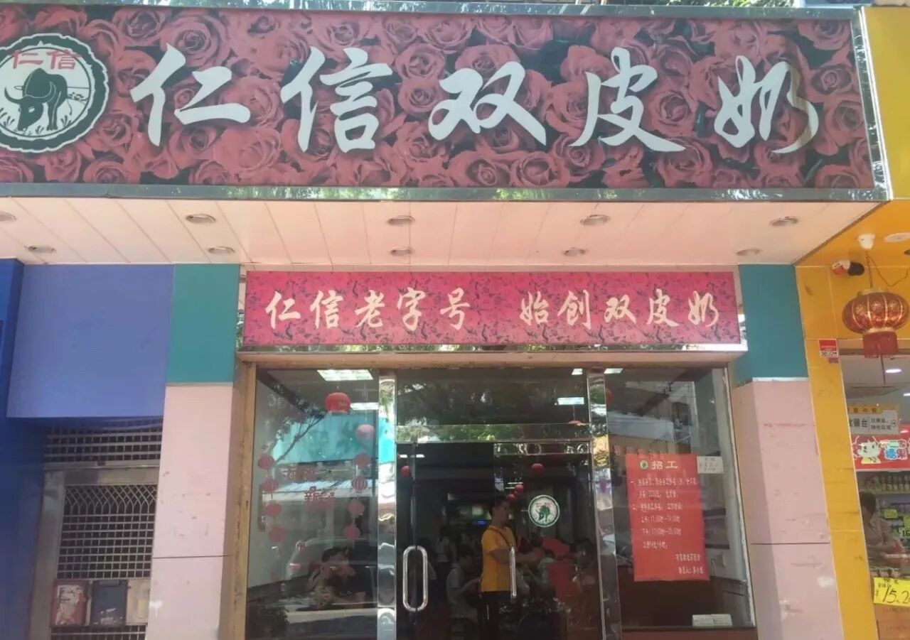下午就到“仁信”吃下午茶吧!感觉它真的是老街标配,位置就在穗银对面。顺德的双皮奶出了名的好吃,而“仁信”就是顺德的老字号之一。