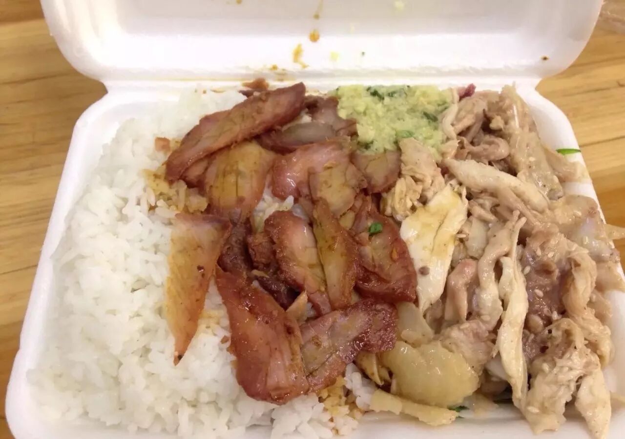 手撕鸡比油鸡嫩滑很多,而且够味够香,还有下饭一流的姜葱酱,赞!叉烧也还不错,比较瘦,但是不柴,份量杠杠的,超饱。