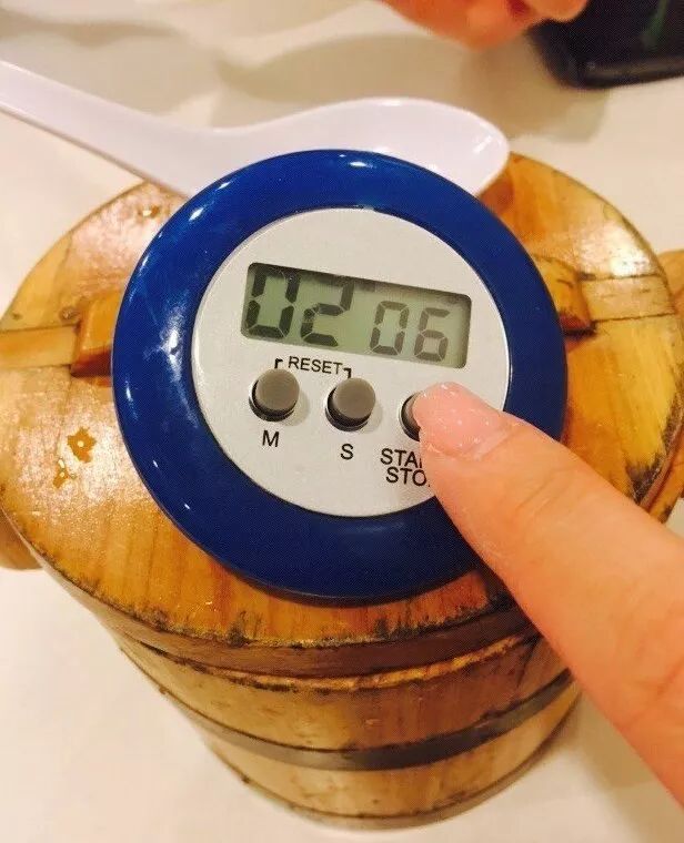 木桶豆腐花端上来的时候,还会给你一个小闹钟,等到闹钟响了之后,就可以吃了,这时候吃口感最好,温热丝滑的豆腐花入口即化,有独特的黄豆味,还可以根据自己的口味加黄糖。