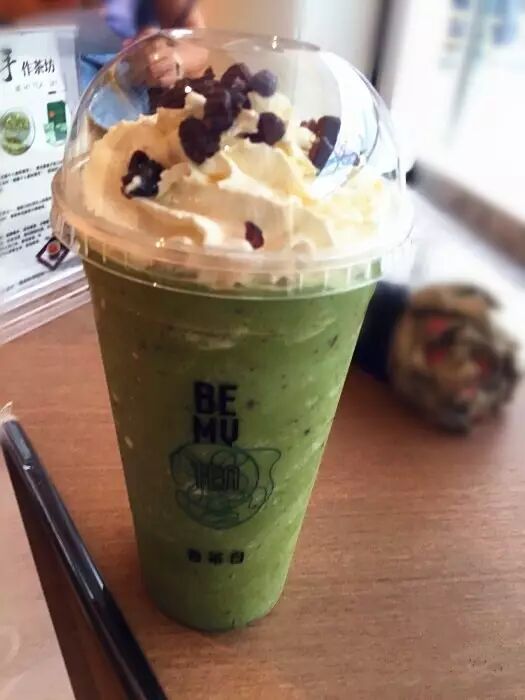 抹茶沙冰的样子非常好看,沙冰奶油跟雪糕,夏天最合适来一杯。