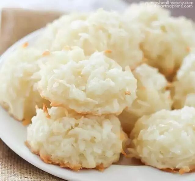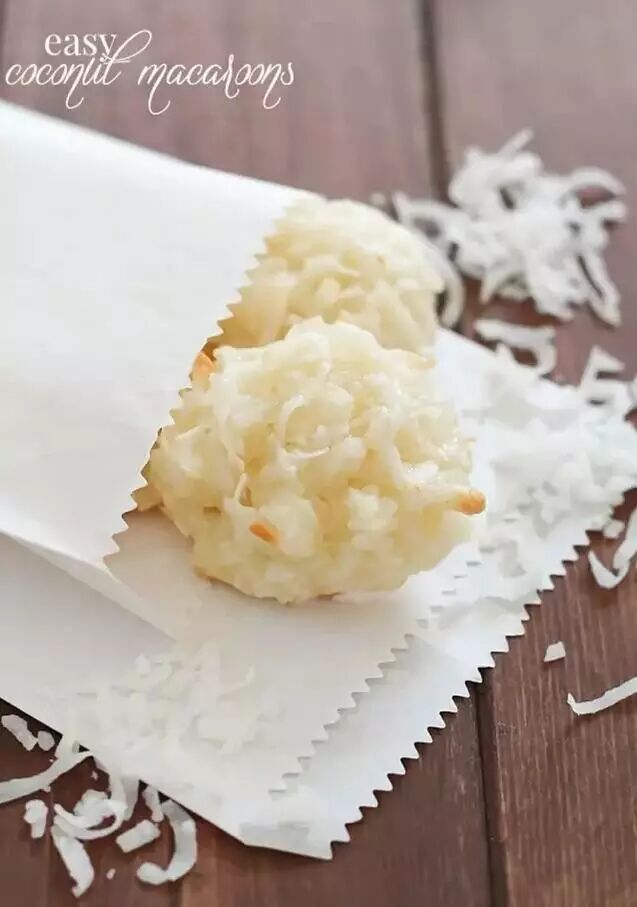 在大碗里将椰丝,面粉,糖和盐搅拌,再放入蛋白和香草精搅拌均匀,结合在一起。