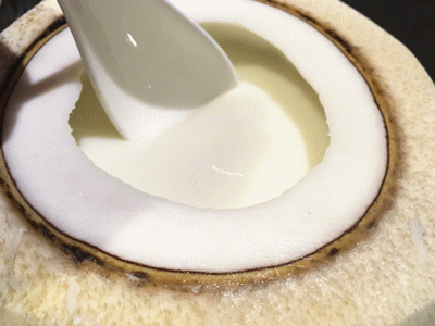 下面就是一大波椰子出动了,每年都风靡朋友圈的椰子冻,是我的最爱啊。吃起来就干净醇香丝丝缠绕着舌头,保留了椰汁原味,入口即化,Q弹,里面的椰肉也很好吃,