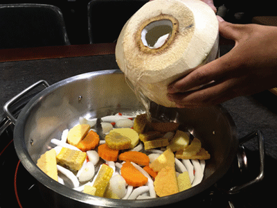 不用怕等的时间太长,好鸡肉当然不会让你等太久,只需要两分钟就开锅了,再稍微焖一小会儿,口味会更棒。原来吃过几回文昌鸡,无论是肉本质的味道还是口感,感觉是吃过的最棒的鸡肉。再加上煮开的椰汁,口味鲜甜。
