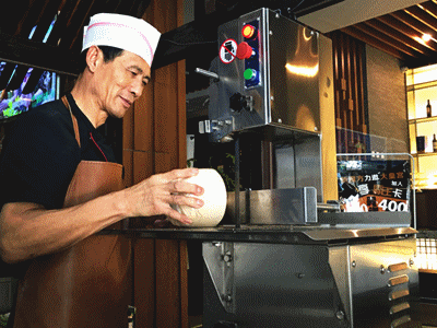 每天海南空运来的新鲜椰子,师傅用最专业的工具进行切割。诶嘿,师傅看我录还害羞了呢。