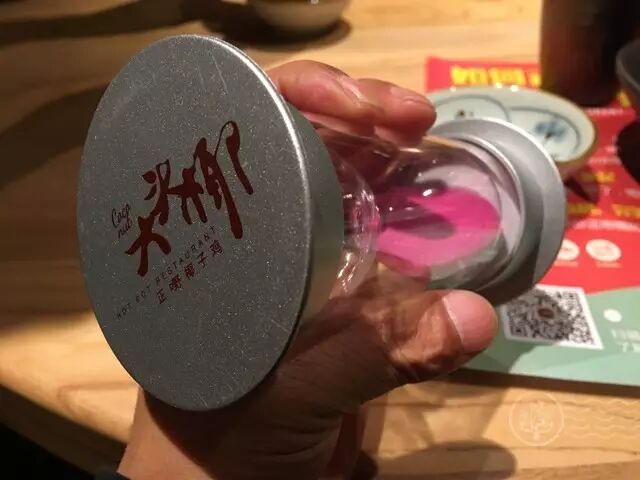 椰子鸡的特色,用沙漏计算时间,6分钟可以喝汤。所以服务员开始煮椰子鸡汤的时候把沙漏放在桌上,沙漏漏完刚好6分钟时间,便可品尝美味的椰子鸡汤。