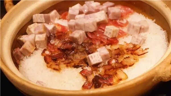 第二步:汤喝足肉吃够,鲜甜完了,需要一碗腊味煲仔饭调和味道,咸甜搭配。