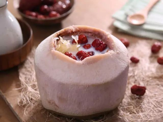 材料:红枣、椰子、银耳、鲜奶、冰糖
