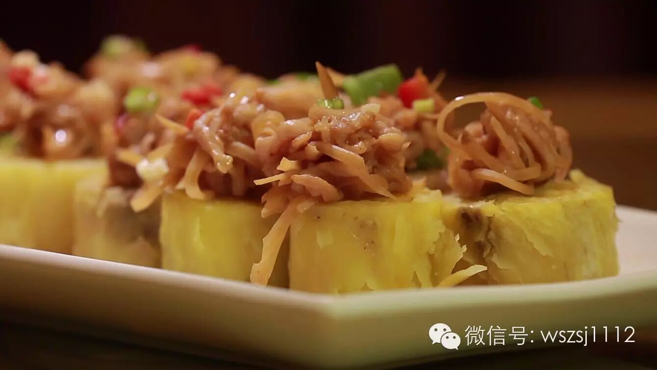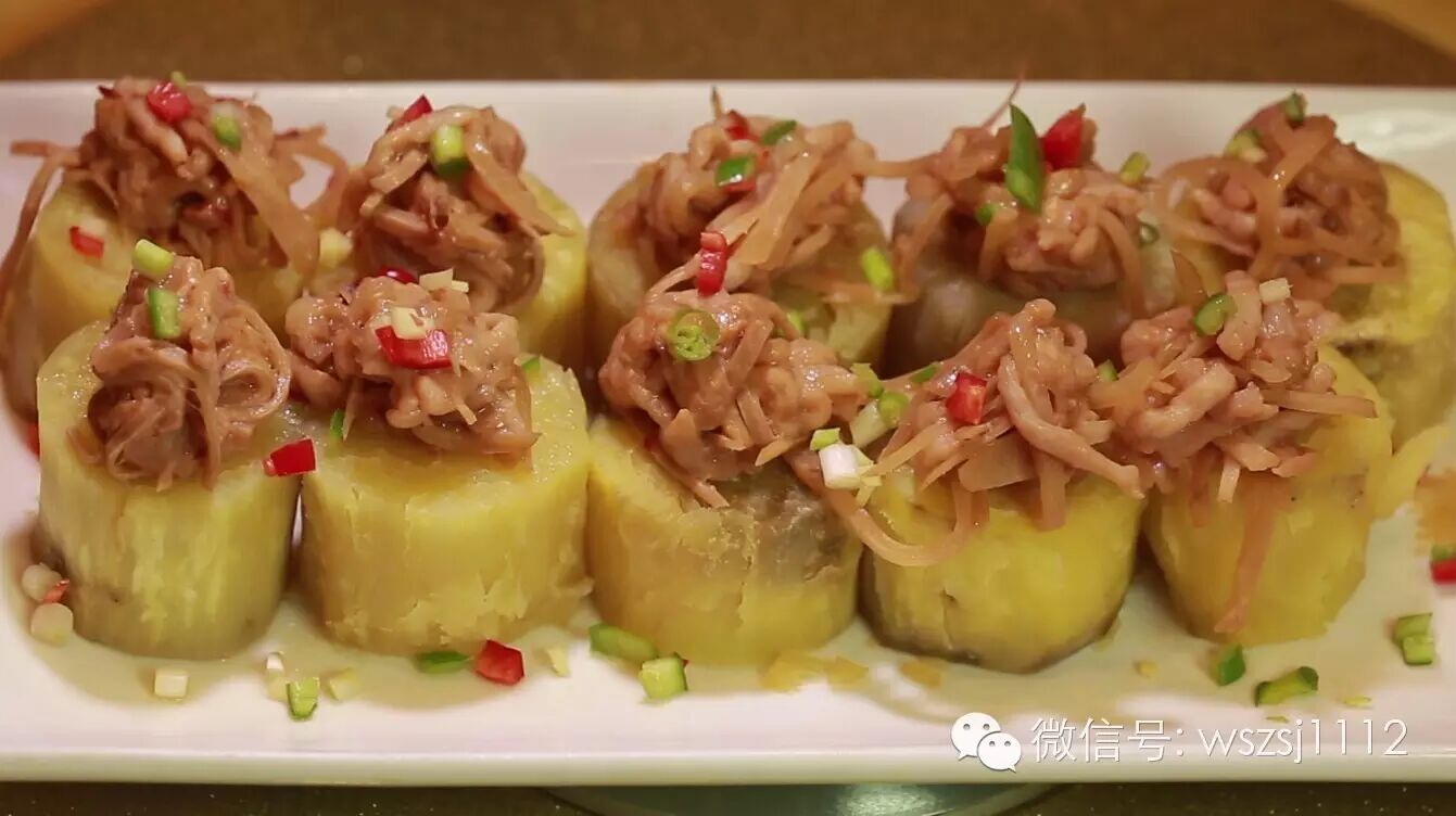 来恩平,不能错过的还有这里土生土长的番薯、鱼头和芋苗。面肉就是猪脸肉,肉质纤维细小,吃起来爽滑又弹性,跟咸中微甜的头菜一起摆放在番薯上一起蒸熟,汁水都渗透到番薯里,不干身,够晒味。