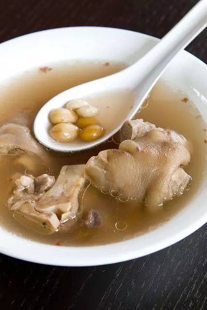 3.在锅中,加入清水、黄豆、猪蹄和姜片,大火烧开后,小火煮2小时。再加入红枣煮30分钟。