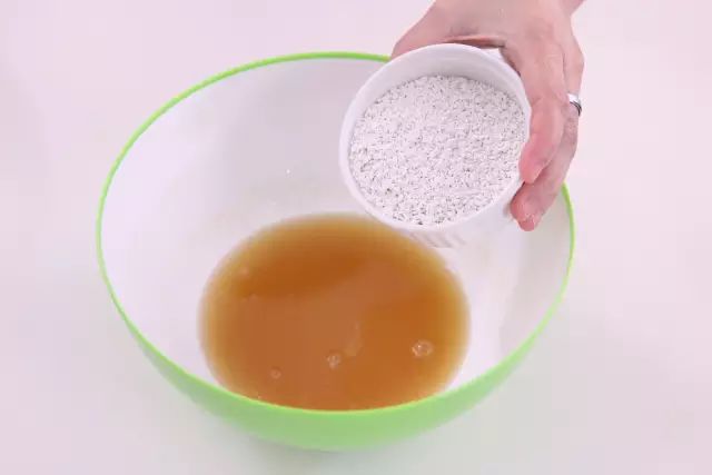 3.向红枣糖水中加入马蹄粉,搅拌均匀,然后把汁过滤备用。