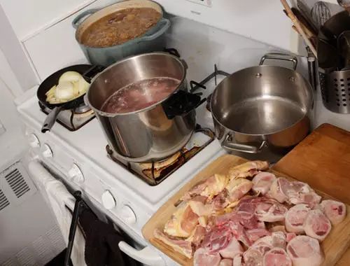 2.清水煮沸,放入猪蹄去腥,然后取出备用。