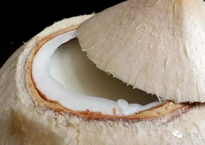 1.挑选靓椰子(注意不要选用表皮发黑的),用刀尖放在椰子的尖角下一点点的位置,敲击几下就可以把椰子汁引出来了。