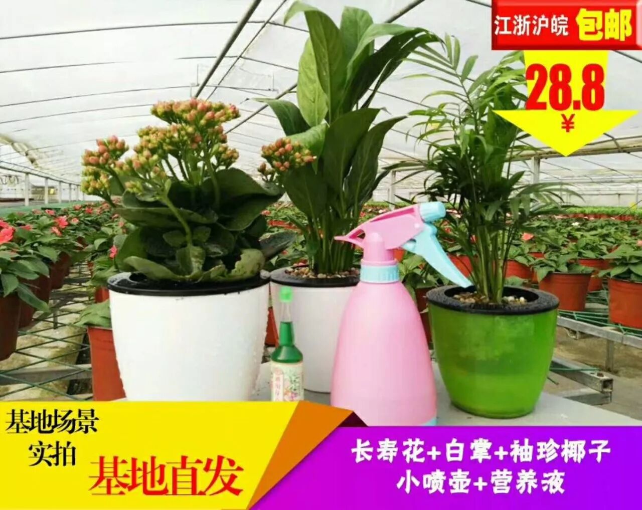 【只需28.8元】 白掌、袖珍椰子、长寿花包邮送到家