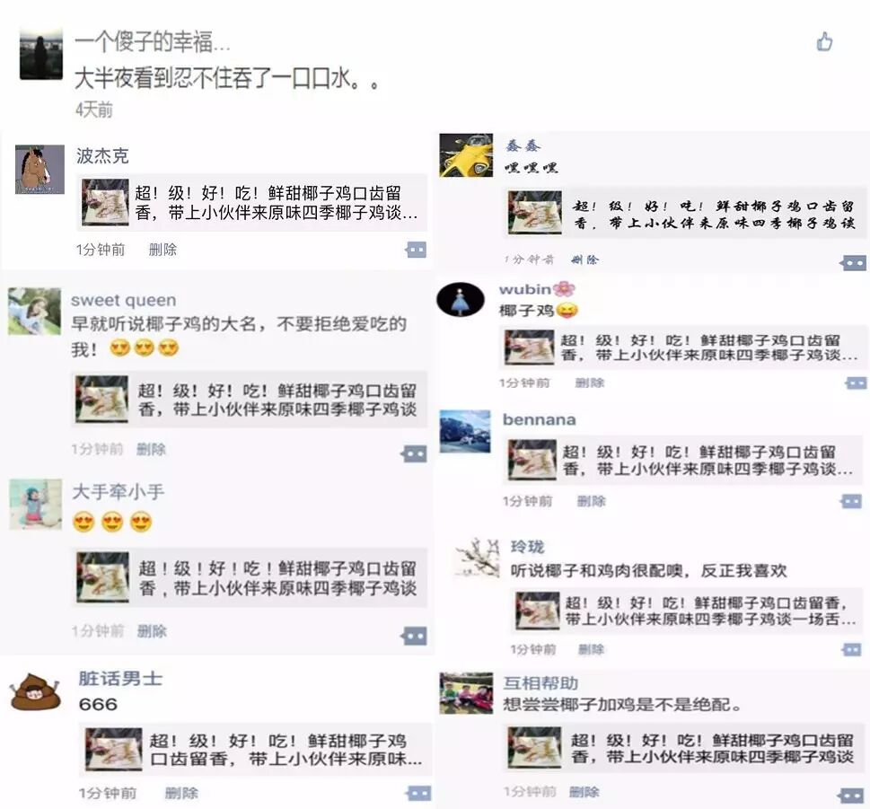 美食城会玩霸王餐第三十八期原味四季椰子鸡『中奖名单』揭晓了!! 2023-04-19 23:50:29 最有追求的吃货都关注我们Exclusive Publisher本期活动由【美食城会玩】独家出品吃饭不积极,思想有问题Exclusive sponsorship本期活动由【原味四季椰子鸡】独家赞助我和我的老婆们都说好吃List of winners本期霸王餐中奖名单Get the way领取方式请加小编微信号:mschw520进行领取