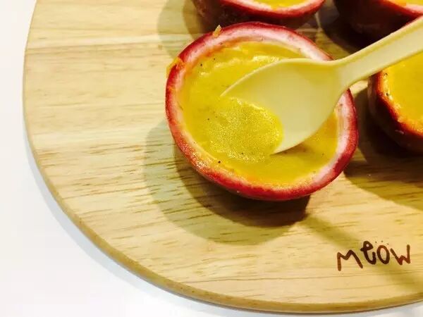百香果连籽打碎做成的百香果冻,入口酸酸甜甜,还可以吃到微弱的籽的颗粒感。