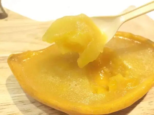 所以,口感不似别处像果冻那样,而是有点绵密的,甚至是粘稠的,用勺子要用点力才能挖出一块来。
