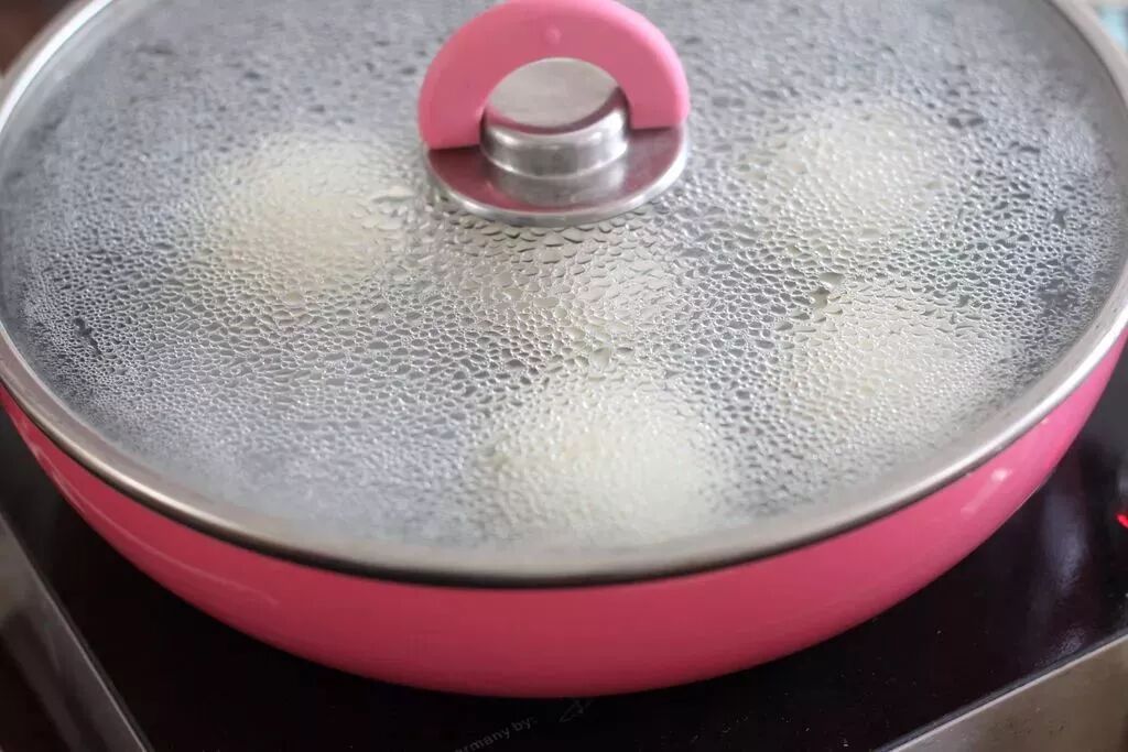 5、锅里倒入适量油,放进包子,盖锅盖醒发10分钟左右。
