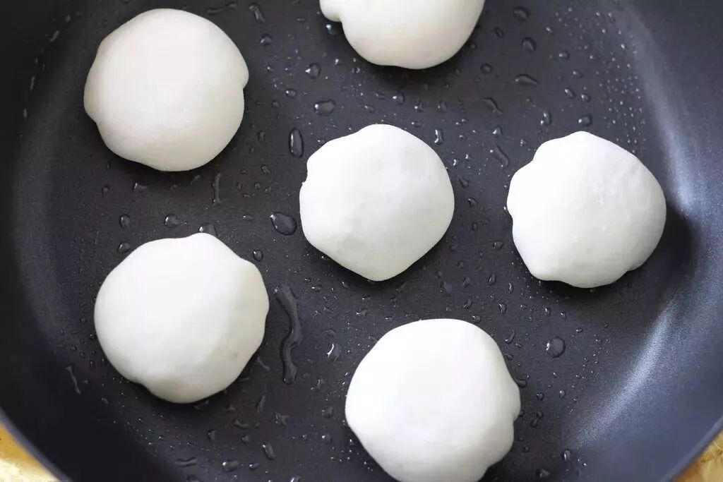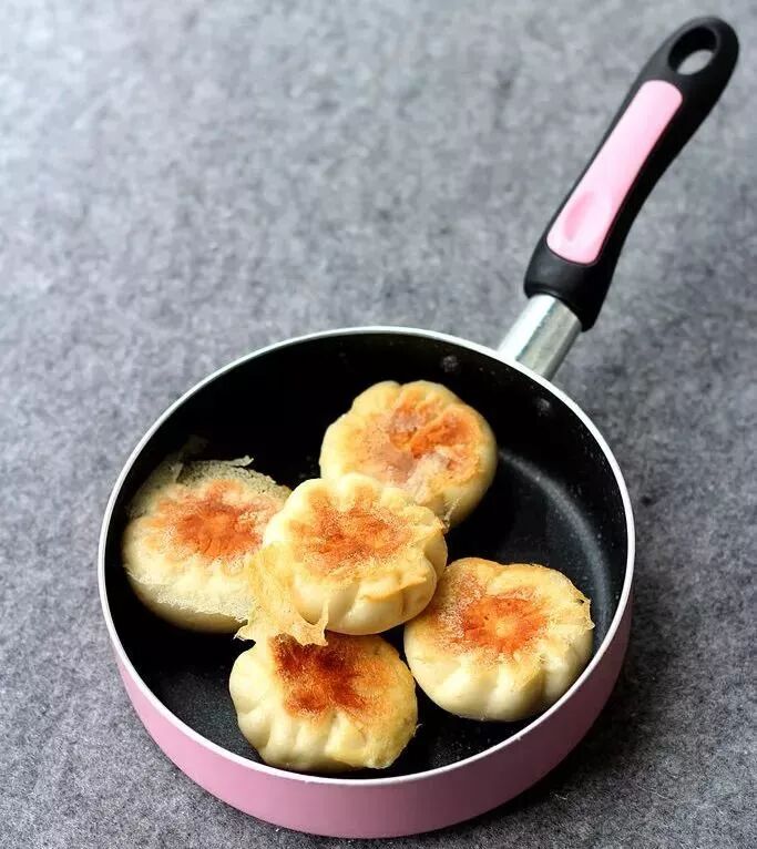 往锅里倒面粉水,可以做出冰花煎包,一小碗水兑一汤匙面粉即可。关注微信公众号:Findfood520 ,获取更多美食信息