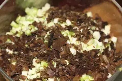 1.将西葫芦洗净切丁,木耳用水泡发后去蒂切碎。