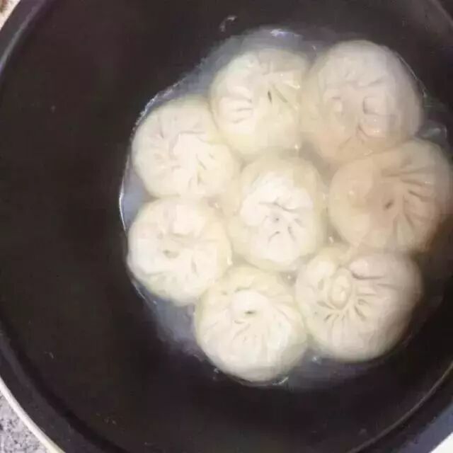 12.放入包子煎一会,加适量水,盖盖子,按煮饭键。