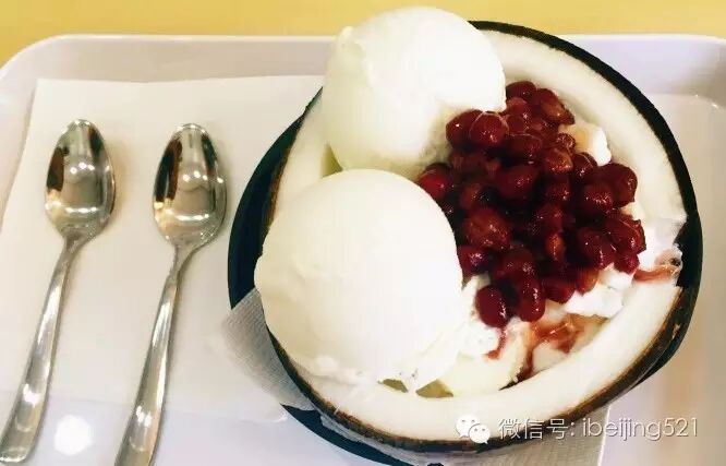 椰子冰儿,这家的冰品都是手工现做的,蜜瓜冰、芒果冰等等用料都很足,口感也非常新鲜!也是目前在北京发现的唯一一家椰子冰淇淋!