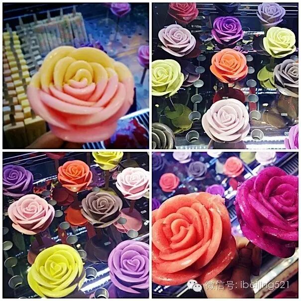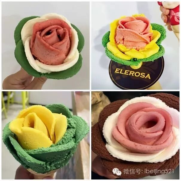 ELEROSA,前几个月在国外的好基友给我晒了一朵他正在吃的玫瑰花形状的冰淇淋,正郁闷着只能看但却吃不到时,在南锣鼓巷一溜达就发现了这家!总共有:抹茶、巧克力、酸奶、芒果、树莓这5种口味,每一款都很好吃!