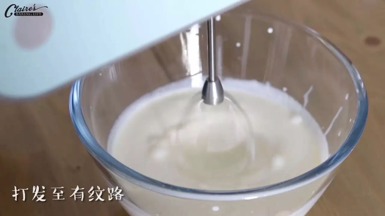 一直打到有纹路为止,这个过程也可以用手动打蛋器。