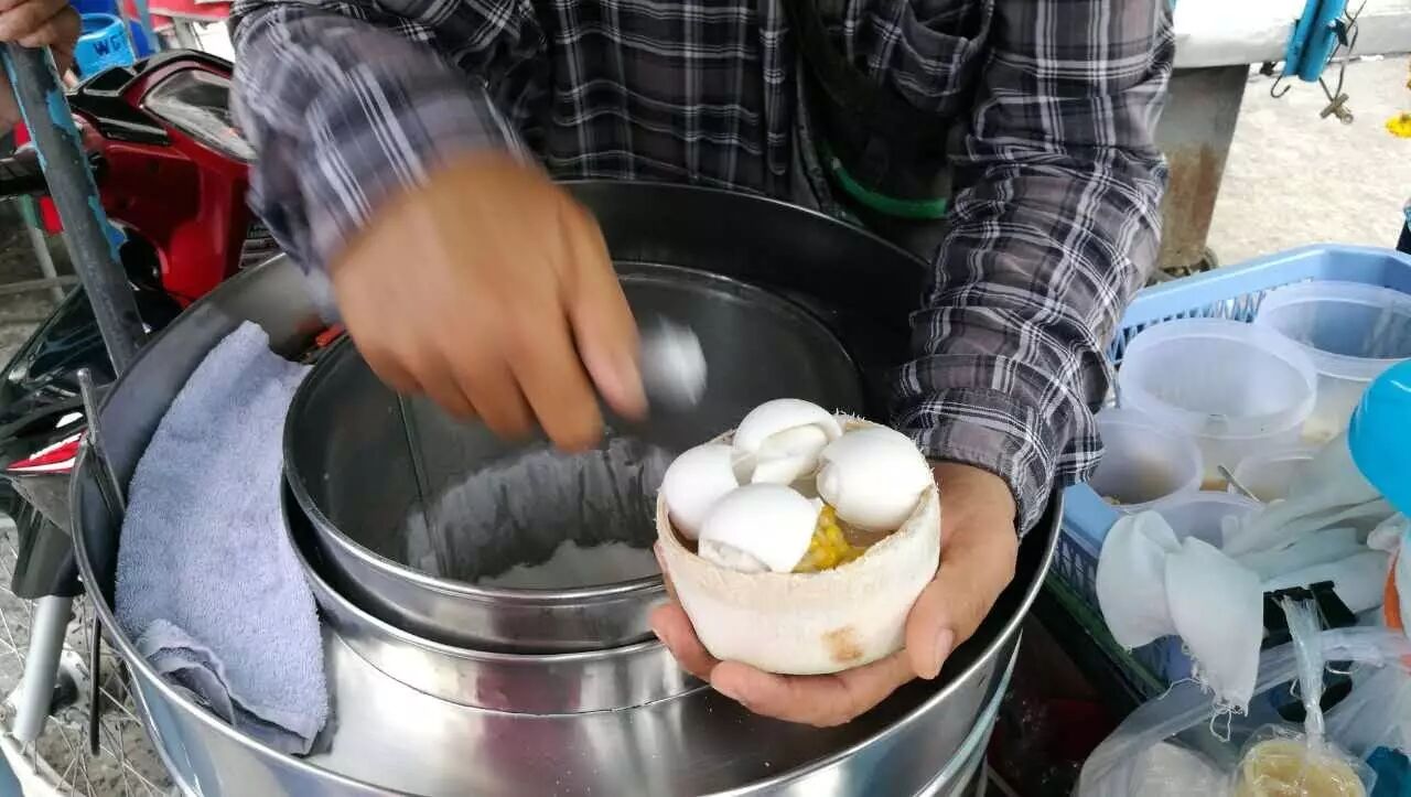 有一起帮忙剐椰子肉的,也有帮忙往椰子壳里填食料的,摊主便宜卖他的椰汁冰激凌,顾客得到了实惠,最终,顾客来帮摊主一起制作冰激凌,这样互惠互利的事情,看着很和谐,同时,摊子旁边挨着还有一家是卖其他甜品冷饮的老板,看到这家摊子生意太好,忙不过来,结果,他也来帮忙卖椰子水。