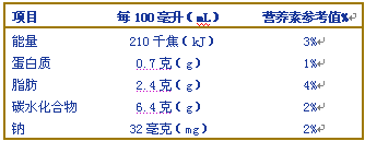 配料:饮用水、鲜椰浆、白砂糖、食品添加剂(酪朊酸钠、蒸馏单硬酸甘油脂、蔗糖脂肪酸脂)