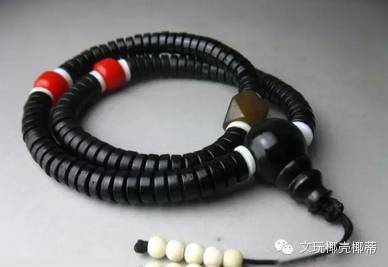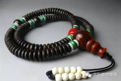 制式一般形为扁珠,用椰壳或椰蒂磨制,表面看其材料普通,但一串好品相椰壳佛珠也极其罕见。盘佩椰壳佛珠,冬不凉手,夏不畏汗。