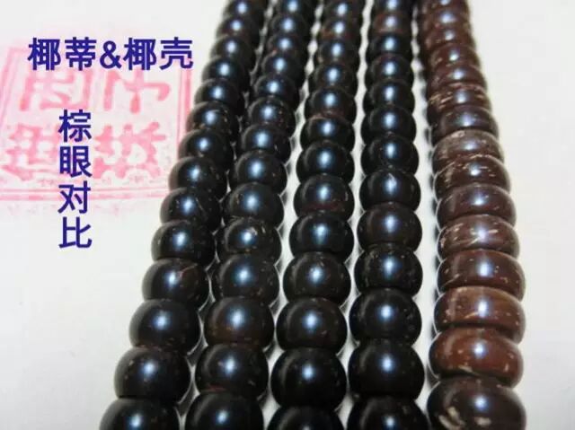清代袁枚《随园诗话》中说:“近来习尚,丈夫多臂缠金镯,手弄椰珠……。”赵棻亦有记载:“乾隆年间,户部侍郎赵秉冲,精选一串椰子数珠,珍比千狐之腋。”这段话描述应该是精品“椰蒂”佛珠,而非普通椰壳。