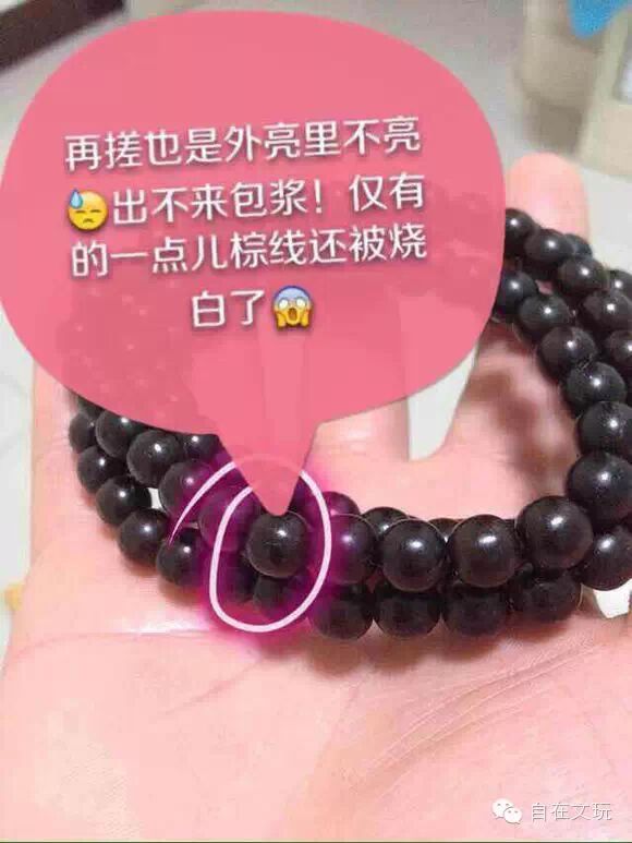 椰壳的特性:冬不凉手,夏不畏汗,只要你一接触椰壳,就自然的会爱上它。椰壳的盘玩一点不讲究,直接上手,不要去碰水即可,完全不需要戴手套盘之类,非常易上手。到了冬天干燥的时节,上一点点橄榄油和婴儿油即可。如何选择一串精品的椰壳,首先必须是纯手工制作(市面90%以上都是机工产品,基本都染色油焖过蜡),其次是选择印尼椰蒂料,最后必须是无优化,优化过的椰壳虽然拿到手好看,但是长期佩戴有害身体健康,并且玩时间长了发乌黑色没有光泽。