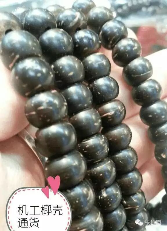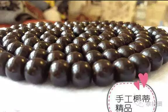 椰蒂棕线少,棕眼少,白皮少,密度高,厚度一般在6-10mm,10mm以上的很罕见了,做出来的椰蒂佛珠品相较好。