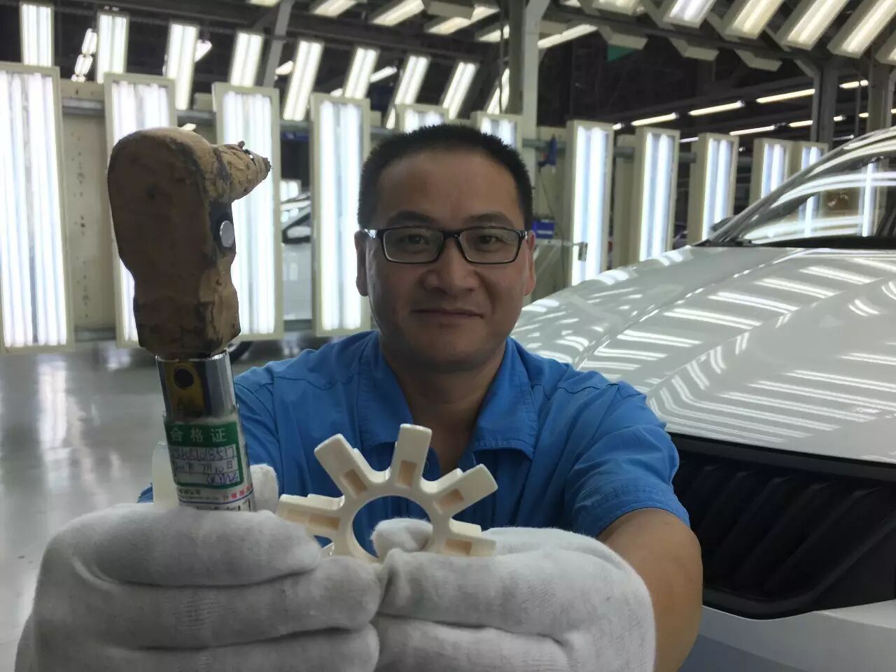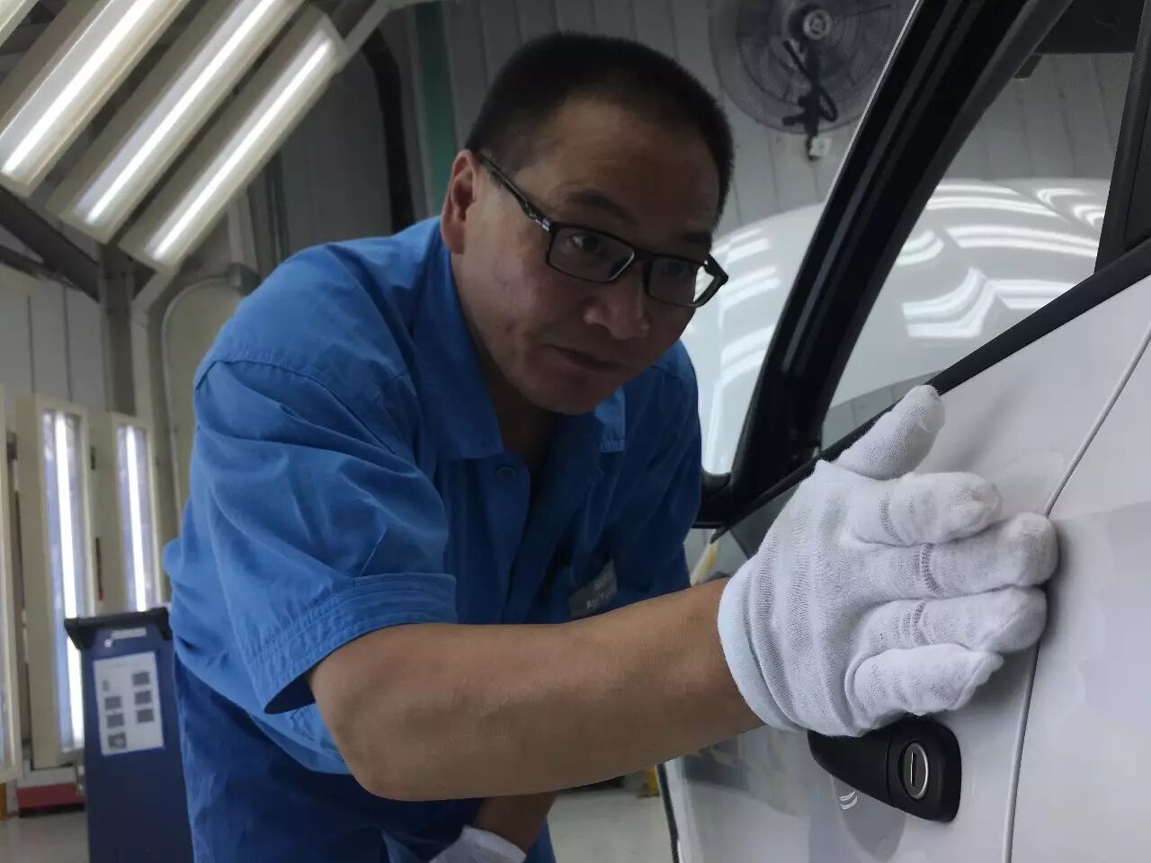 为了处理一个产品缺陷,陈爱国一般都会在车旁仔细观察好久,这是一个返修人的匠心。