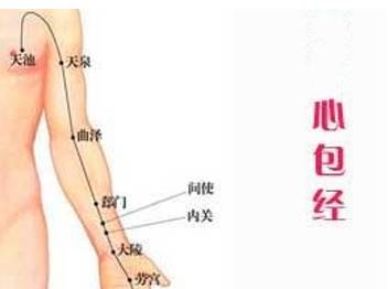用一只手沿对侧心包经的路径,从中指尖向上沿途按揉,内关、极泉等穴重点按揉。如果觉得按揉比较麻烦,沿心包经拍打也能获得同样的效果。