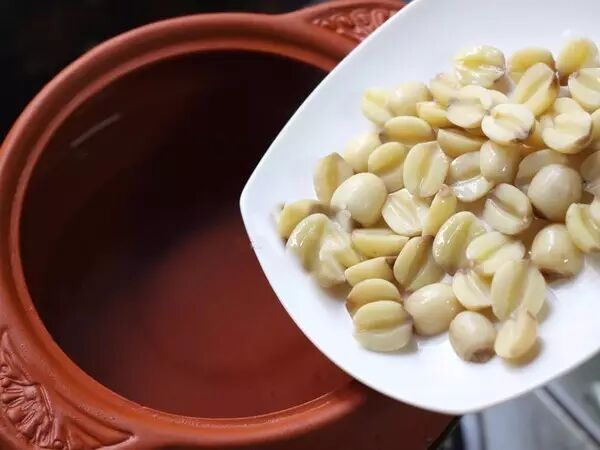 步骤4:用旺火烧开后改用文火,煲至莲子熟烂时停火,喝汤吃料。